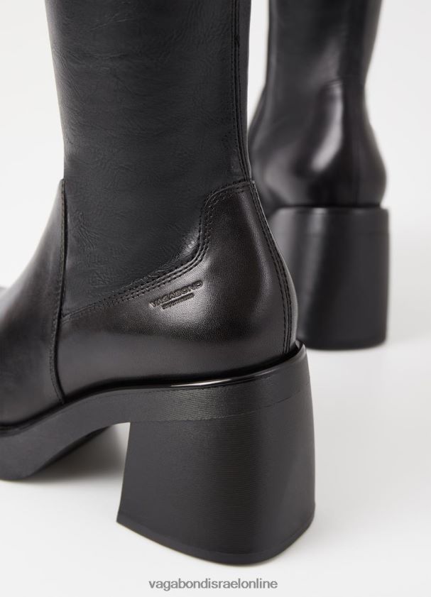 brooke הם המגפיים הגבוהים בפלטפורמה עם עיצוב בהשראת רטרו. הסגנון עשוי מעור שחור הכולל מוט נמתח, אצבעות מרובעות ורוכסנים פנימיים. סוליות הגומי השמנמנות משודכות לעקבי בלוק 87 מ"מ.