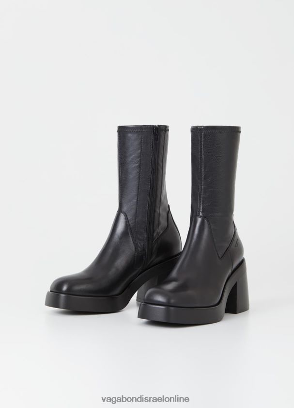 מגפיים שמנמנים מודרניים ברוק עשויים מעור נמתח/חומר משולב. הסגנון בגובה בינוני מתבסס על סוליות פלטפורמה מוצקות עם עקבי בלוק 87 מ"מ. הפרטים כוללים אצבעות מרובעות ורוכסנים פנימיים.
