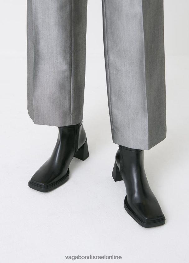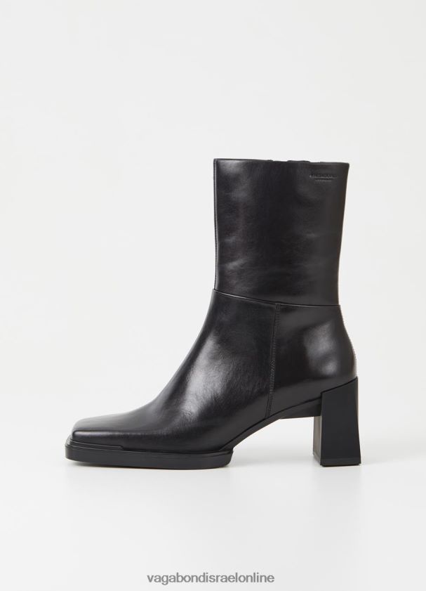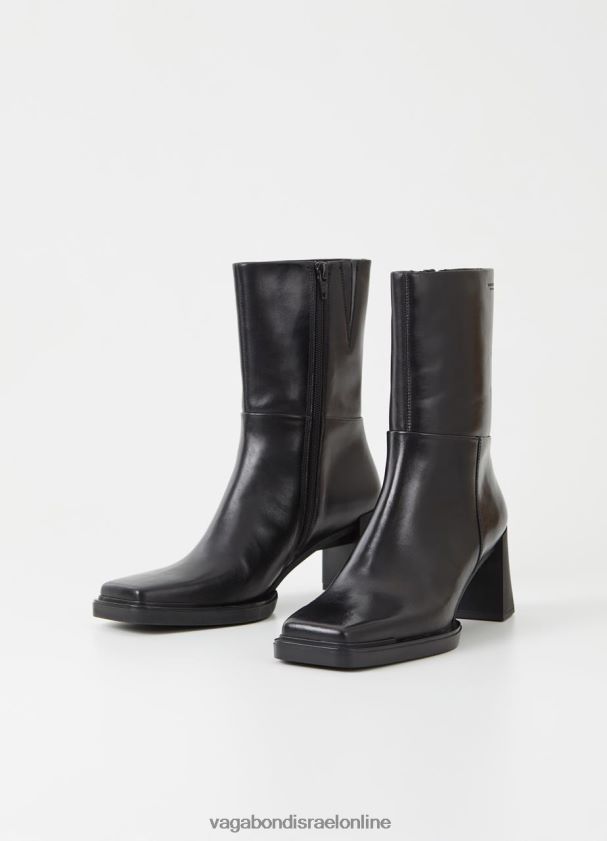 edwina הם מגפונים עם עיצוב מעודן. הסגנון עשוי מעור שחור הכולל אצבעות מרובעות חדות ורוכסנים פנימיים לאורך הפיר. העקבים הצרים בלוק בגודל 74 מ"מ.