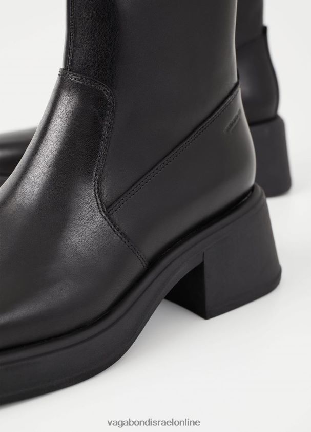 דורה הם המגפונים היומיומיים עם מראה שמנמן. הסגנון עשוי מעור שחור, מפורט עם צורת אצבע מרובעת, תפרים דקורטיביים ורוכסנים פנימיים. העקבים השמנמנים בלוק בגודל 59 מ"מ.