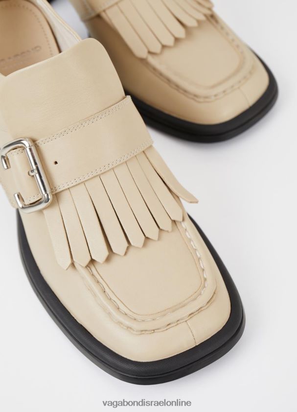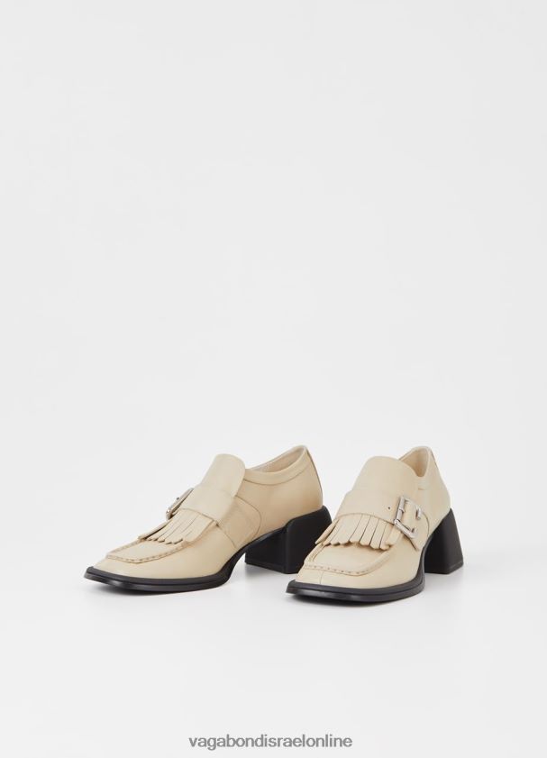 ansie הם נעלי העקב עם מראה עכשווי. הסגנון עשוי מעור אוף-ווייט הכולל צורת אצבע מעוגלת, פרנזים דקורטיביים ופרט אבזם בגוון כסף על החלק העליון. העקבים המתרחבים בגודל 59 מ"מ.