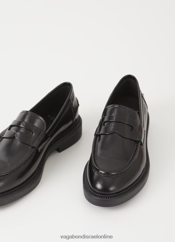אלכס הוא ה-Penny Loafer היומיומי המעוצב מעור מלוטש שחור, הכולל פרטים מובניים וחריץ פרוטה מסורתי על פני הערפד. הסגנון המודרני מתבסס על סוליות גומי מוצקות, עם עקב נמוך בגודל 33 מ"מ. הפרטים כוללים אצבעות בצורת שקדים ותפרים גלויים לאורך הסוליות החיצוניות.