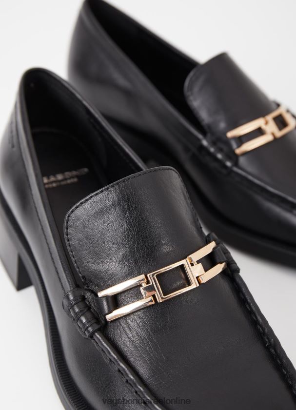 לופר בלנקה מודרני עם עקבים עשוי עור שחור, הכולל אצבעות מרובעות ושרשרת מתכתית דקורטיבית לרוחב הערפד. הסגנון משלים עם עקבים מתרחבים בגודל 47 מ"מ.