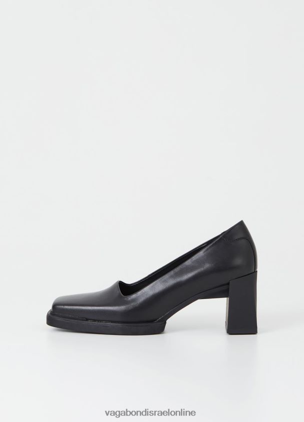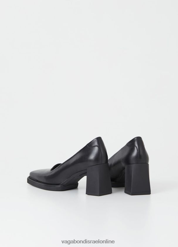 משאבות אמינות Edwina עשויות מעור שחור חלק, מפורטות עם אצבעות מרובעות חדות וחלק עליון בהשראת רטרו. הסגנון הפיסולי מתבסס על עקבי בלוק ברורים בגודל 74 מ"מ עבור הרמה עדינה.