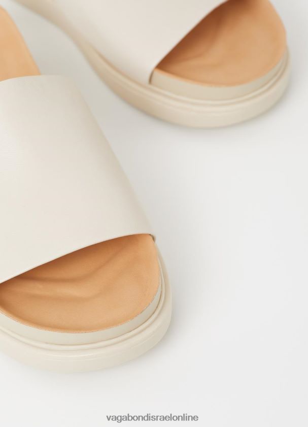 סנדלים מודרניים להחלפה ארין מציעים עיצוב מינימלי אך מתוחכם. החלק העליון הנקי עשוי מעור לבן, הכולל רצועת עור רחבה, אצבעות פתוחות ומדרסים מעוצבים. סוליות הפלטפורמה החיצוניות הן 40 מ"מ.
