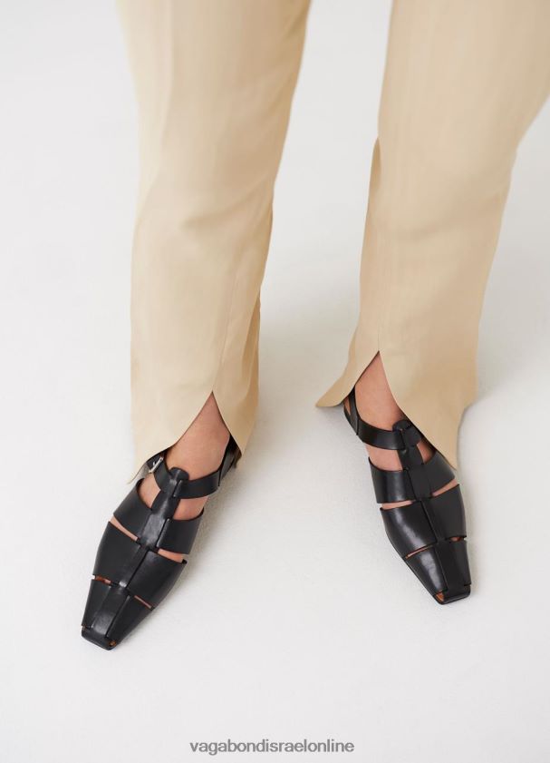 wioletta הם הסנדלים בהשראת הדייגים עם מראה מעודן. הסגנון עשוי מעור שחור הכולל חלק עליון ארוג, צורת אצבע מחודדת ורצועת קרסול מתכווננת עם אבזם בגוון כסף. הסוליות הדקיקות מתבססות על עקבים של 11 מ"מ.