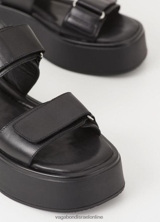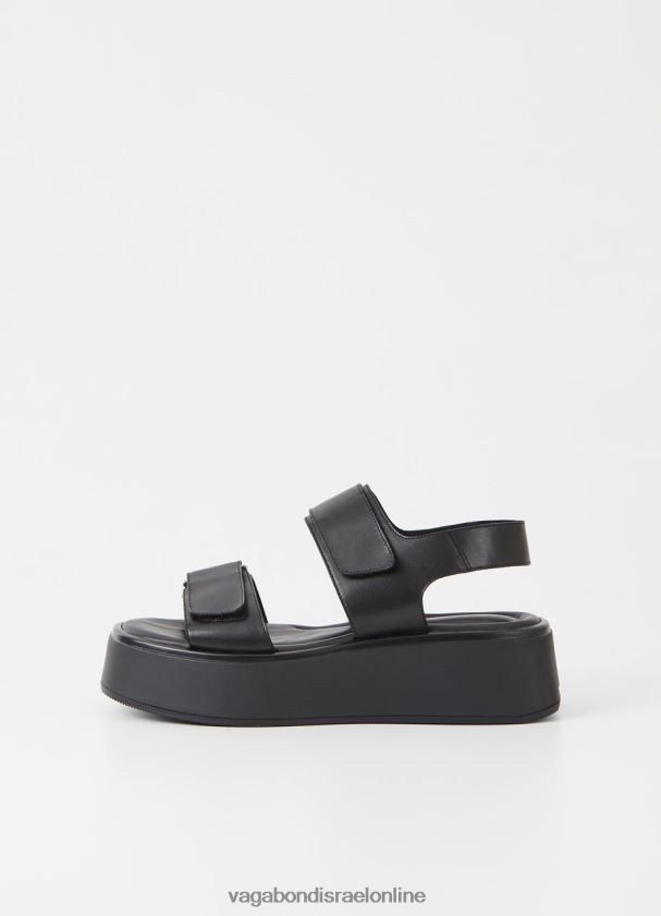 קורטני הם הסנדלים השטוחים הספורטיביים עשויים מעור שחור הכוללים רצועות עור מתכווננות, עקבים פתוחים ומדרסים מרופדים. הסוליות החיצוניות השטוחות המתרחבות בגודל 50 מ"מ.