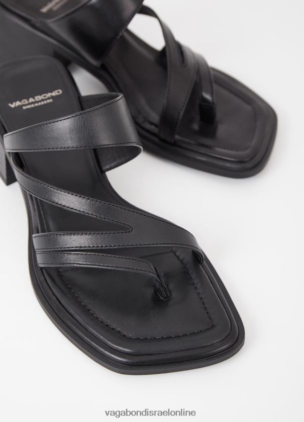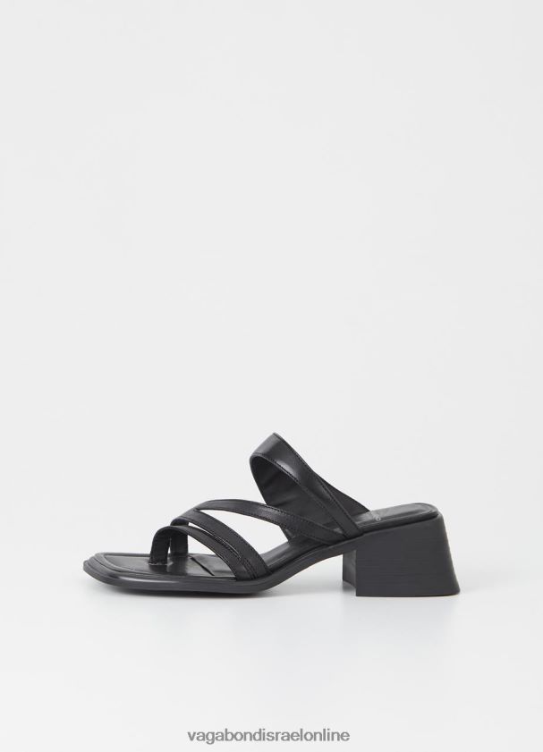 ines הם סנדלי החלקה עם רצועות עם השראה מהארכיון שלנו. החלק העליון עשוי מעור שחור, עם עיצוב רצועות ואצבעות מרובעות עדינות. הסגנון מבוסס על עקבים מתרחבים בגודל 53 מ"מ.