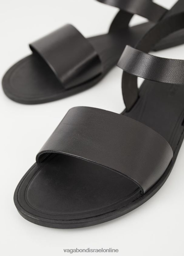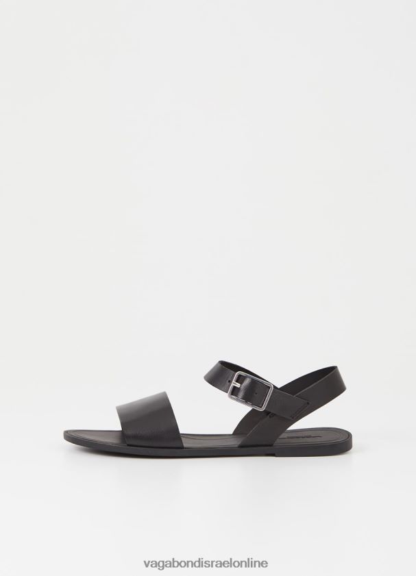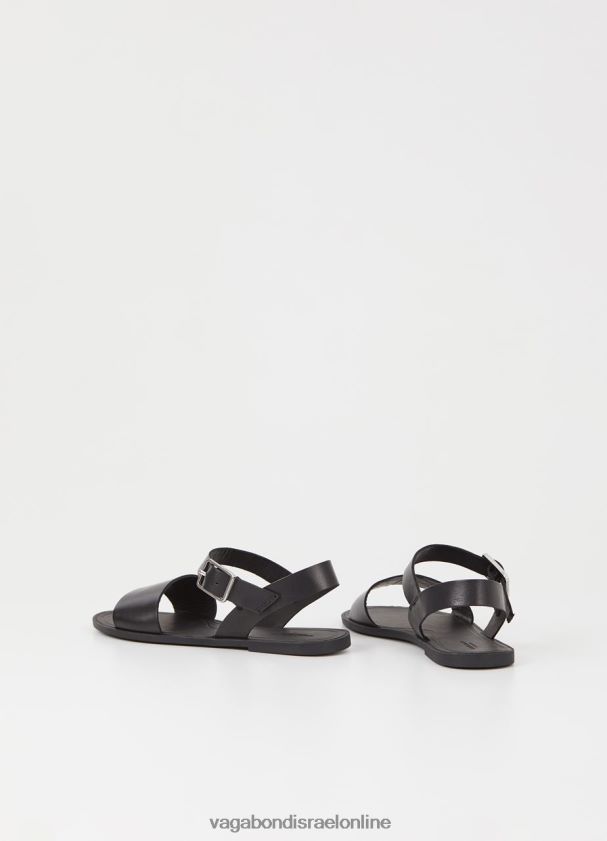 tia 2.0 הוא הסנדלים השטוחים היומיומיים עם מראה נינוח. הסגנון עשוי מעור שחור הכולל רצועות רחבות לרוחב החלק העליון, בהונות מעוגלות ורצועת קרסול מתכווננת עם סגירת אבזם. הסוליות החיצוניות הדקות שמוגדרות על עקבים של 10 מ"מ.