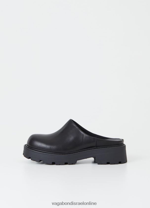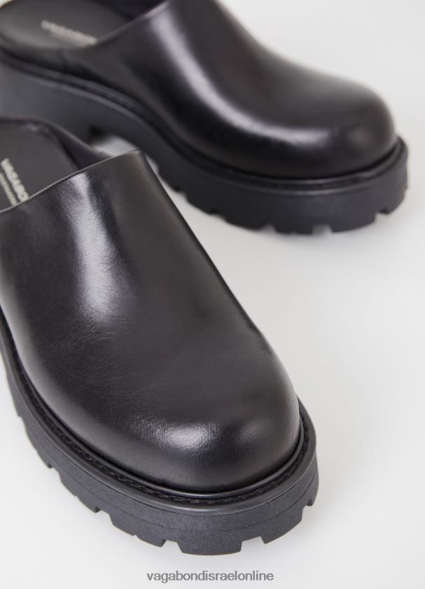 chunky Mules Cosmo 2.0 עשוי מעור שחור, הכולל עיצוב החלקה, בהונות מעוגלות וחלק עליון מינימלי. הסגנון מבוסס על סוליות גומי מוצקות של 45 מ"מ להרמה עדינה.